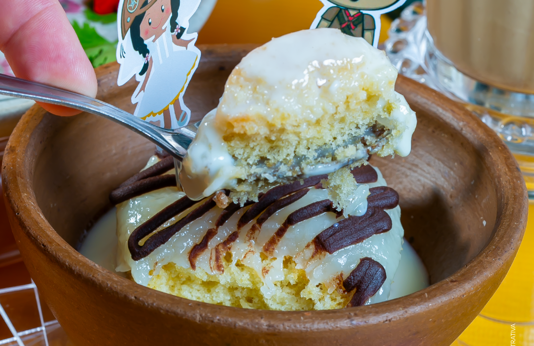 Um clássico reinventado: bolo gelado com cocada e calda de chocolate, doce e marcante como o amor desses dois cangaceiros.